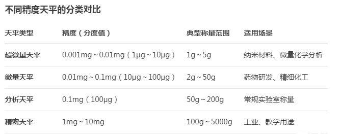 不同精度天平的分類對(duì)比