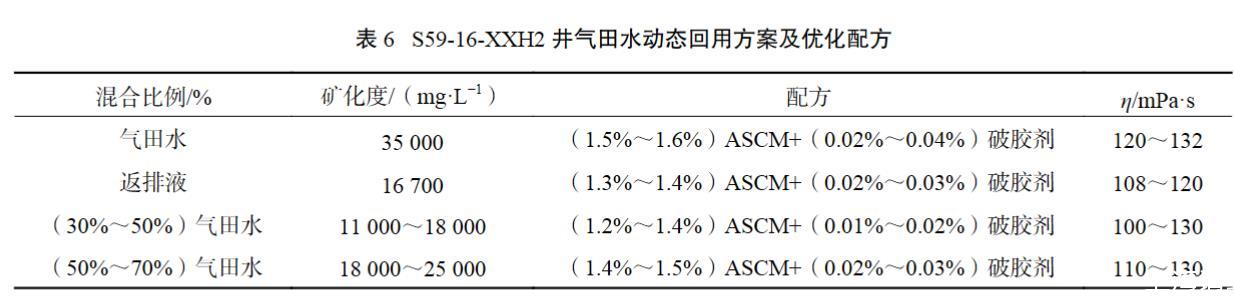 表6 S59-16-XXH2井氣田水動(dòng)態(tài)回用方案及優(yōu)化配方
