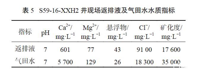 表5 S59-16-XXH2井現(xiàn)場(chǎng)返排液及氣田水水質(zhì)指標(biāo)