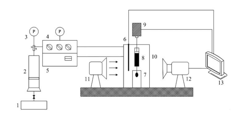 9-馬達(dá)驅(qū)動(dòng)動(dòng)力系統(tǒng);10-高溫高壓容器;11光源;12-攝像機(jī);13-計(jì)算機(jī)數(shù)據(jù)采集分析系統(tǒng)