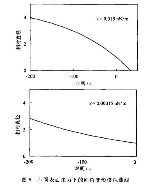 實驗和模擬結果顯示,細胞表面張力的變化深刻影響著胞質分裂進程中細胞間橋的變形。我們之前的實驗表明,經過blebbistatin整體處理后的細胞,其間橋變形D?點之前與γ=0.015 nN/μm的模擬曲線較吻合,與正常細胞和單側子細胞CD處理后的正常細胞差異明顯,說明表面張力和分裂溝主動收縮共同影響間橋變形。另一方面,整體blebbistatin和局部CD共同作用下的細胞顯示了與其它各組不同的變化趨勢,其變形曲線近似為線性,這與彈性松弛變形的曲線相似,也與間橋變形動力學模型中當表面張力接近0的情況相近,結果顯示在去除分裂溝主動收縮的條件下,細胞表面張力直接決定著細胞間橋變形。