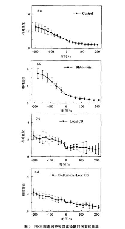 圖5 NRK細胞間橋相對直徑隨時間變化曲線