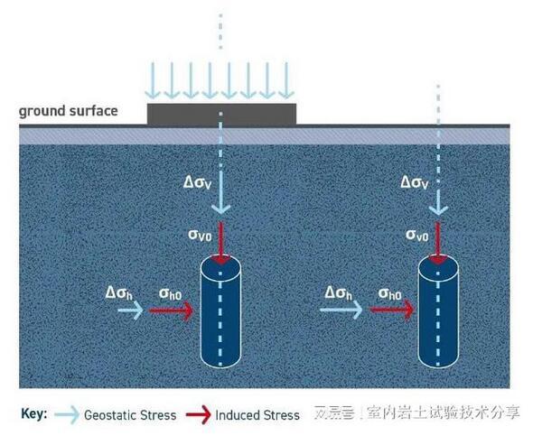 淺層地基引起的不同應力條件示例