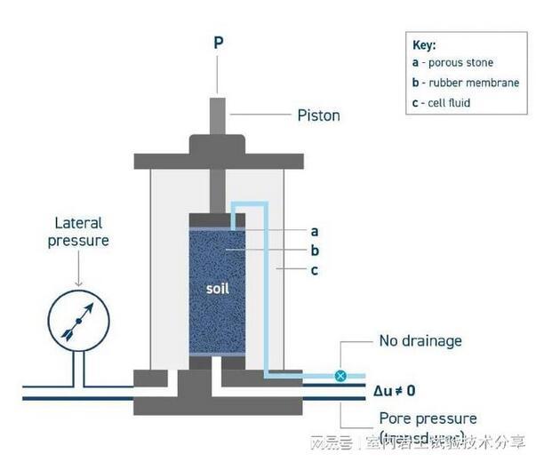 在不排水的測試中,不允許樣品排水-其體積在此階段不會改變,但形狀會發生變化,導致孔隙壓力發展,將進行測量。如果允許排水,在剪切階段,水將從試樣中排出,使試樣的體積和形狀發生變化,同時防止孔隙壓力發生變化。