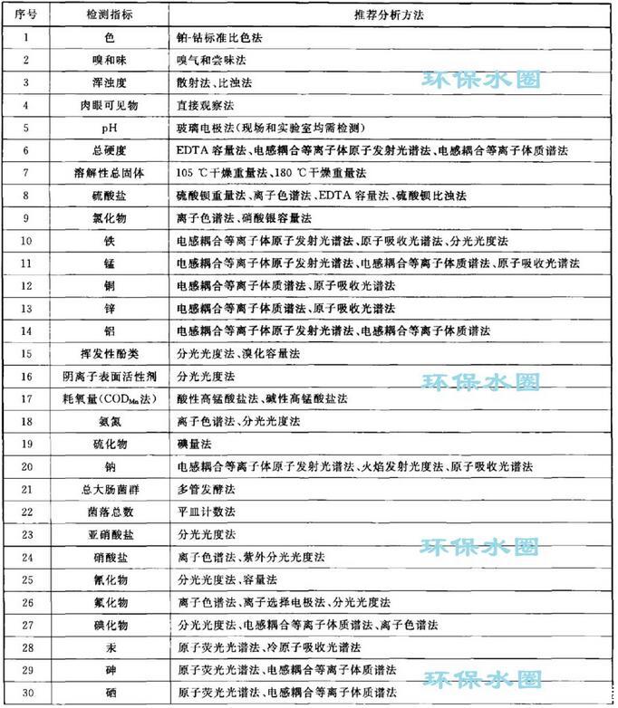 地下水質(zhì)量檢測(cè)指標(biāo)推薦分析方法